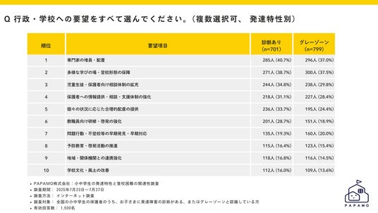 調査対象: 全国の小中学生の保護者のうち、お子さまに発達障害の診断がある、またはグレーゾーンと認識している方