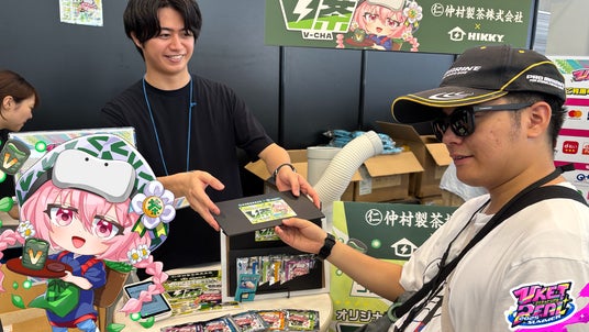 仲村製茶株式会社は、Vketちゃん1号の茶摘み衣装イラストをパッケージに採用したコラボ商品「V茶(ぶいちゃ)」(全5フレーバー)を販売し、約3,000杯の試飲を実施。香り高くすっきりとした味わいに「事前情報で気になっていたけど、リアルで飲んだらファンになった!」との声も多数。「パッケージの可愛さや遊び心が良い」と味と世界観の両面で高評価を集めました。