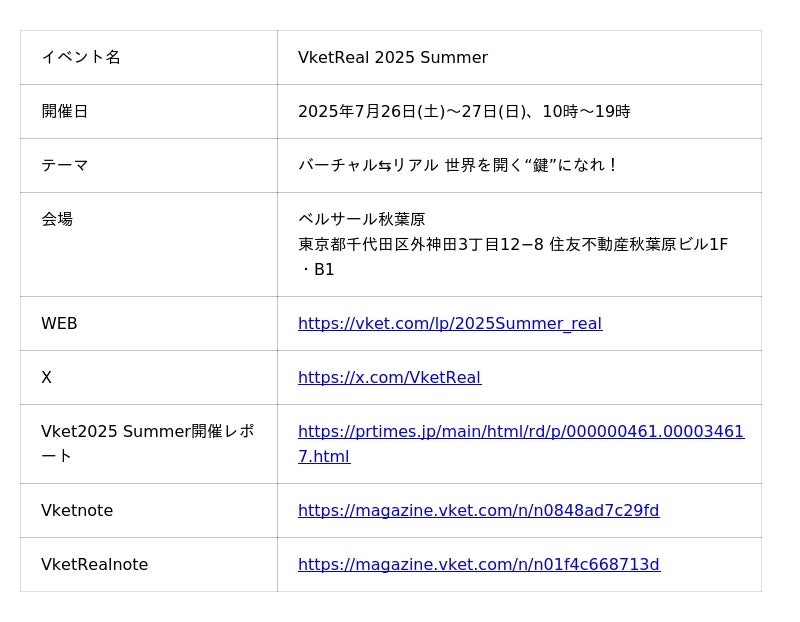 【Vket2025 Summerの開催レポートはこちらをご覧ください】
