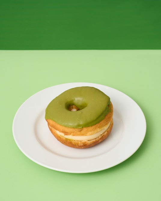 抹茶パウダーをふりかけたほんのり温かいドーナツと、程良く溶けた冷たい抹茶アイスのとろけるようなハーモニーをお楽しみください。