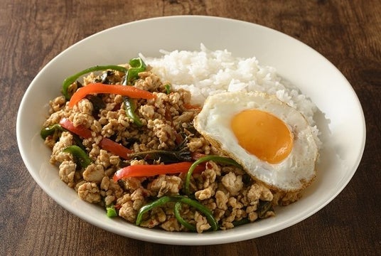 「ガパオ(ホーリーバジル)の葉がたっぷり入っている」