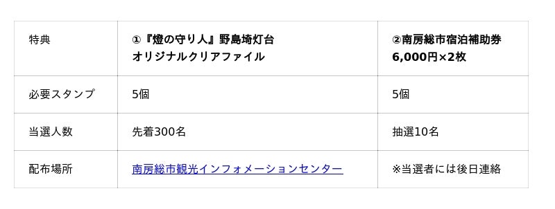 この度、燈の守り人のキャラクター活用権を有する千葉県南房総市と連携し、関東の5つの灯台をめぐるデジタルスタンプラリーを開催。スタンプを全て集めた方には、先着300名に『燈の守り人』のキャラクター(野島埼灯台)がデザインされたクリアファイルをプレゼントするほか、豪華景品をご用意しております。歴史と光をめぐる旅を、ぜひお楽しみください。