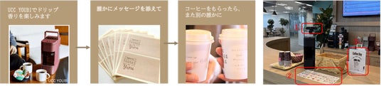 2.のイベント期間のみ、自分のためのみならず感謝したい人にもメッセージを添えてコーヒーまたはお茶を渡すことができる。