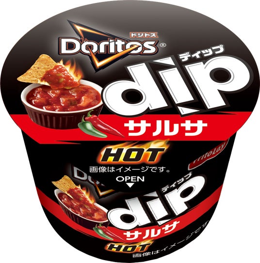 「ドリトス ナチョ・チーズ味」のパリッパリ食感のチップスに「ドリトス dip サルサHOT」と、コクと旨みのあるチーズソースがかかった商品です。HOTタイプのザク切り野菜入りの本格サルサは、ガーリック、クミン、ハラペーニョ等香辛料を加え辛くて濃厚な味わいです。