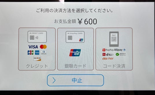 タッチパネルにて操作し決済画面で支払い方法を選択