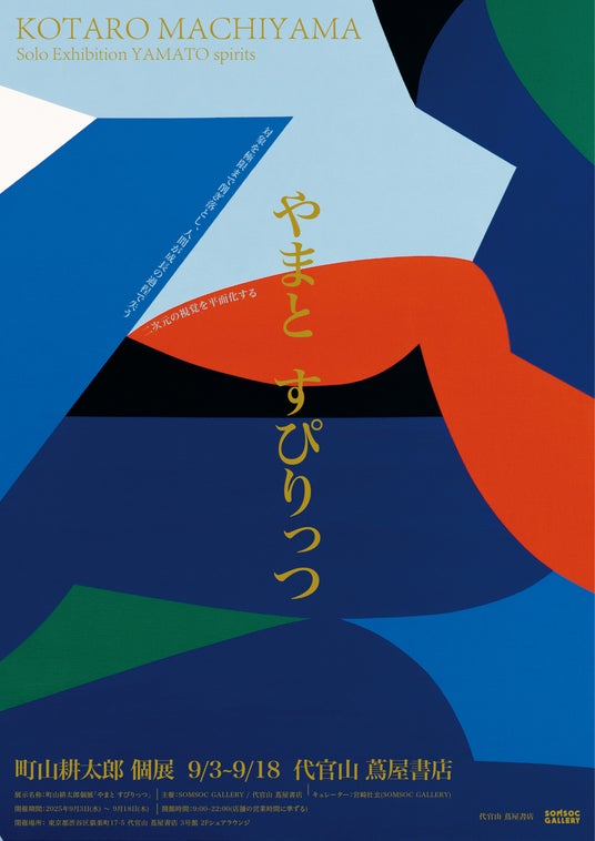 研美株式会社(本社:東京都渋谷区 代表取締役:厳研)が運営するクリエイターズユニット「SOMSOC GALLERY(ソムソクギャラリー)」は、フラットな世界を鮮やかな色彩で描く画家、町山耕太郎の個展「やまと すぴりっつ」を代官山 蔦屋書店で9月3日(水)~9月18日(木)まで開催します。
