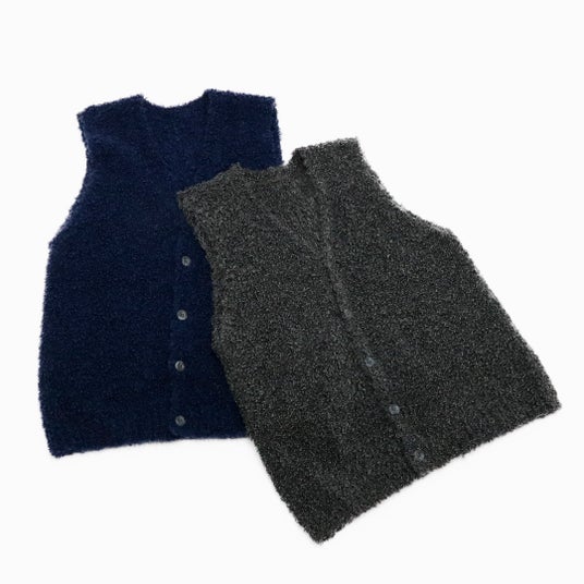ブークレVネックベスト軽く、暖かく、空気をまとうような着心地が特徴。深いVネックがインナーを選ばず、重ねてもスマートな印象を保ちます。着こなしにお洒落感をプラスするブークレベストです。