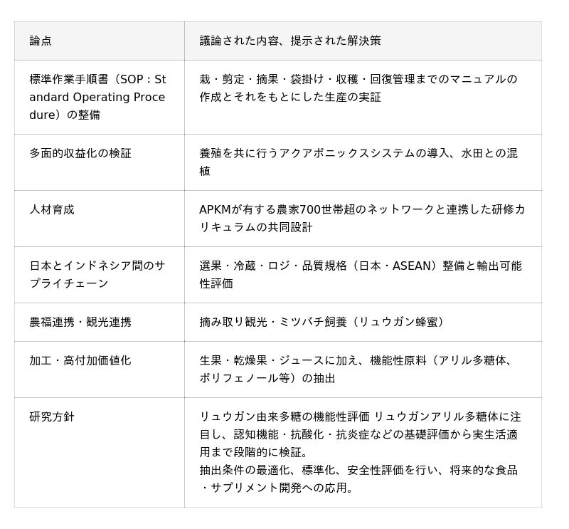 リュウガンのインドネシア国産品種「New Crystal」を核にしたジョグジャカルタ地域の産業振興と健康価値創出の可能性を協議