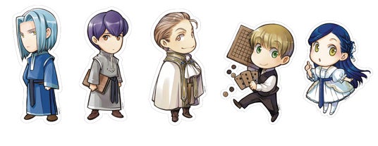 期間中、会場にて税込3,000円ご購入ごとに、オリジナルステッカー (ローゼマイン フェルディナンド ルッツ ベンノ フラン(全5種))をランダムで1枚プレゼントいたします。