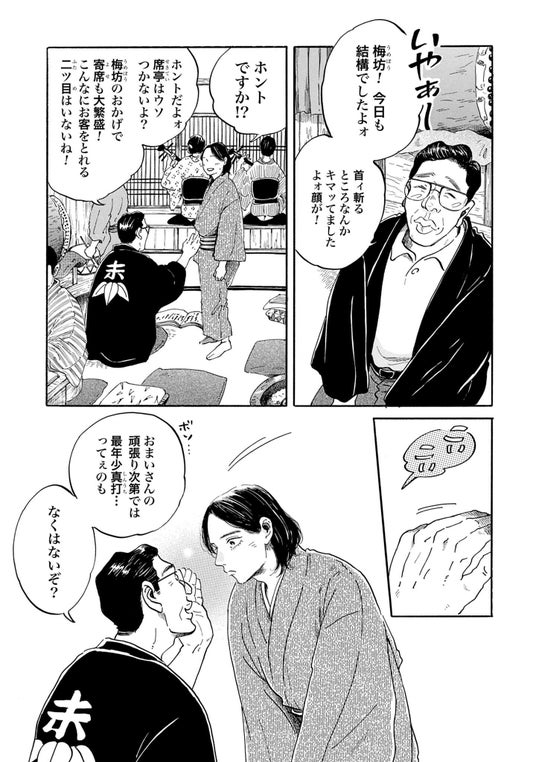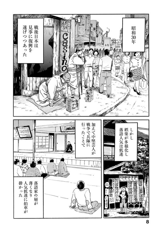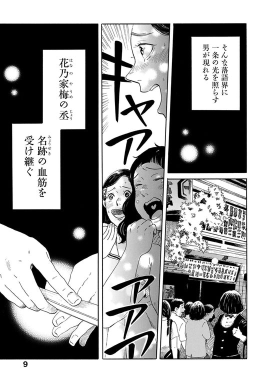 娯楽が多様化し、落語の人気が低迷した昭和30年。そんな中、落語界に彗星のごとく現れた美男子・花乃家梅の丞。彼は天才少女・すず梅に出会い、自分の“才能のなさ”を痛感する。そこから、向かうところ敵なしだった梅の丞の、挫折の連続が始まる。果たして、梅の丞は“外見”だけに頼るのではなく、成長し“実力”で落語界を這い上がっていけるのか、今後が非常に気になるところだ。