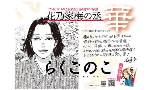 株式会社コアミックス(東京都武蔵野市)が発行する『らくごのこ』第1巻(会田薫)が8月20日に発売されました。帯には麒麟・川島明さん、『ちはやふる』の作者・末次由紀先生の推薦が入っています。