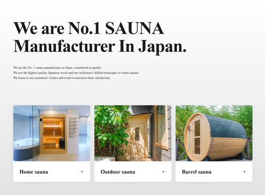 同サイトでは、MySaunaが提供する家庭用・業務用サウナの製品情報、施工事例、技術的特徴、そして日本の木材文化を活かしたものづくりへのこだわりを、英語で紹介しています。