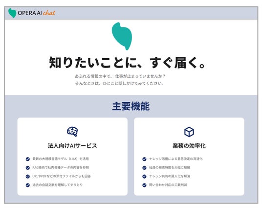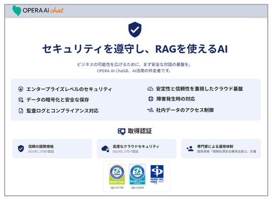 今回の連携により、AI Marketを通じてナレッジベースの「Opera AI Chat」を紹介することで、顧客企業は安全かつ効率的なAI活用環境を迅速に整備できるようになります。