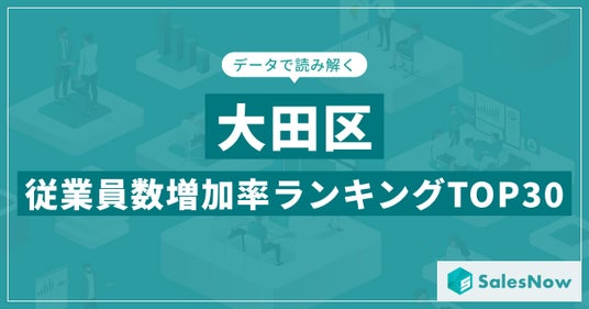 株式会社SalesNow(本社:東京都渋谷区、代表取締役:村岡功規、以下「当社」)は、国内540万社の企業情報を完全網羅した日本最大級のデータベース「SalesNow DB」より、人口の多い上位30都市を対象とした「従業員数増加率ランキング」を発表しました。本リリースでは、各都市別のデータをもとに、今回は「大田区に本社を置く企業」を対象に、従業員数の増加傾向にフォーカスします。