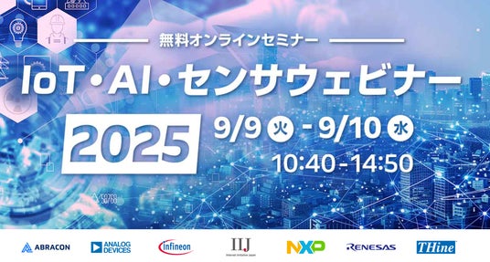 「IoT・AI・センサウェビナー2025」では、最新のIoT、AI、センサに関連する製品やソリューションを半導体メーカー、電子部品メーカー各社よりお届けします。