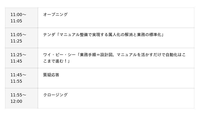 マニュアルトータルソリューションを軸に「ホワイトカラーの業務効率化」を推進する株式会社テンダ(本社/東京都渋谷区、代表取締役会長兼社長CEO/薗部 晃、以下「テンダ」)は、2025年9月10日(水)に、「脱・属人化!マニュアル整備とRPAで誰でもできる仕組みづくり」と題し、株式会社ワイ・ビー・シー(本社/神奈川県横浜市、代表取締役/鈴木 雅一、以下「ワイ・ビー・シー」)と共催ウェビナーを開催いたします。