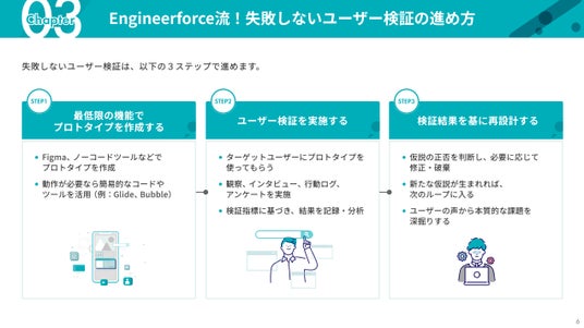 Engineerforceでは、この課題を解決するため「ユーザー検証に最適なプロトタイプ手法」と「失敗しない検証プロセス」を体系化しました。