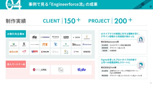 株式会社Engineerforceは、「デザインで魅せて、テクノロジーで動かす」を掲げ、DX推進パートナーとしてコンサルティング・システム開発・UI/UXデザインをワンストップで提供しています。