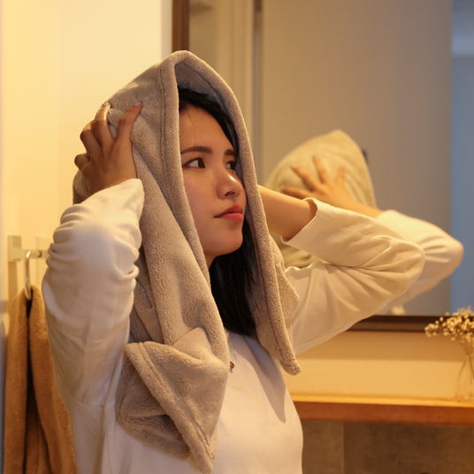 厚みのあるふんわりとした生地が、濡れた髪にやさしくフィットし、こすらず水分を吸い取ることで、髪への摩擦ダメージを抑えます。