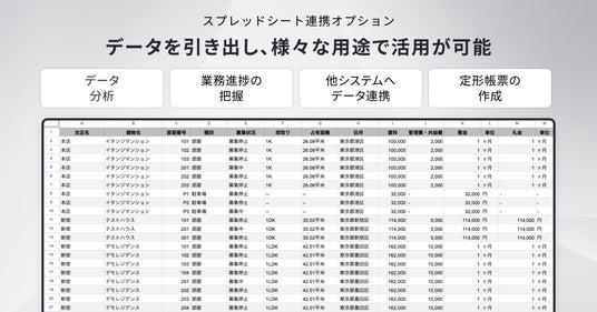 契約・物件・入出金などの賃貸管理データを出力可能なオプション機能として提供