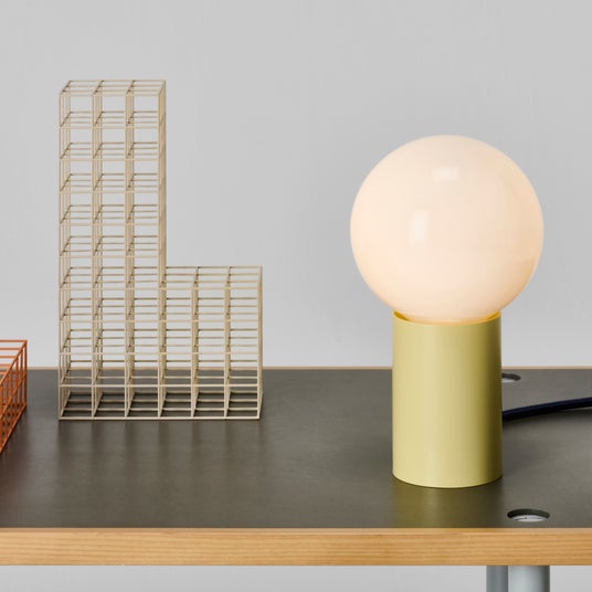 電球とソケットのみの構造を採用した、シンプルな卓上ライトです。本体に映えるカラーコードがデザインのアクセントになっています。筒状のベースにLED電球を取り付け、底面のスイッチでオン・オフが可能です。