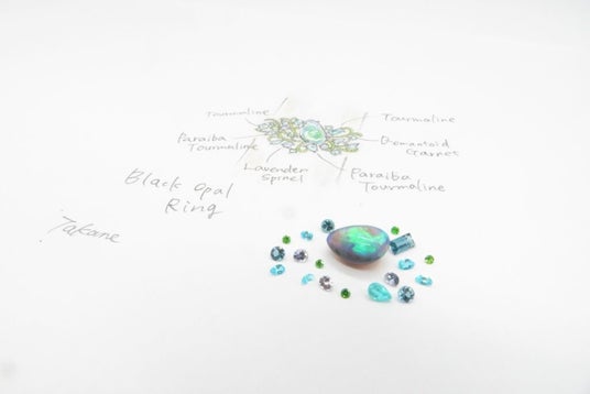 デザイン画の上に石、ルースを乗せると、驚くほどイメージが明確になります。