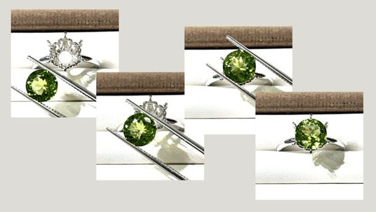 お手持ちの宝石(ルース)をベーネオリジナルデザイン枠に乗せて、出来上がりをイメージ。