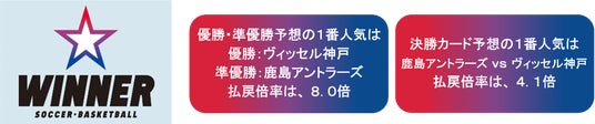 1番人気はどのクラブ? サッカー天皇杯を対象とした「WINNER」 優勝・準優勝チームや決勝カードを予想するくじの投票状況をご紹介!8月27日(水)18時20分まで販売