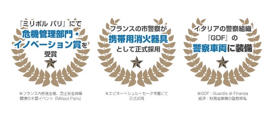 ファイヤーショーカスティックは、世界45ヵ国以上で販売されており、フランスでは市警察が携帯用消火器として、ファイヤーショーカスティックを正式採用。