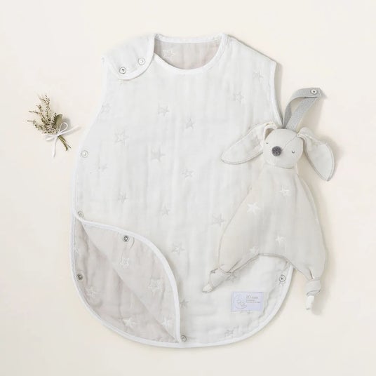 10moisで大人気のスリーパーとにぎにぎを組み合わせた、赤ちゃん想いのやさしさあふれるセット。両アイテムに使われているのは、綿100%の三河産「ふくふくガーゼ」。洗うほど空気をふくみ、やわらかく育つ、なめても安心の素材です。産後すぐから役立ち、眠る前のふれあいが、親子にとってあたたかな習慣になるセットです。