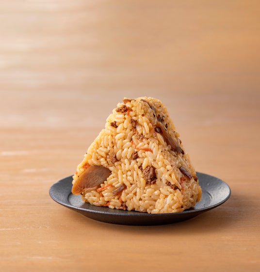 陸奥湾産帆立と昆布を合わせたおむすび。具材を出汁とともに煮込み、煮汁は炊飯にも使用。おにぎりの中央に添えた濃厚な旨みのウニソースにもこだわりました。