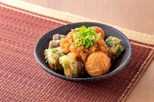 青森県の老舗メーカー「イゲタ沼田」のちくわを使用し、歯切れのよい衣で仕上げたちくわ天と、ごぼう天、揚げかまを出汁で味付けした大根おろしとともに、さっぱりとお召し上がりいただけます。