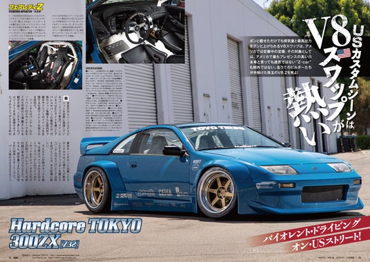 毎号、Z特集ではアメリカの流行をお届けしているが、今回は「V8スワップ」に注目して紹介。Z32×V8NA、Z33×V8スーパーチャージャー、S30×V8ターボチャージャーと、迫力満点の3台だ。