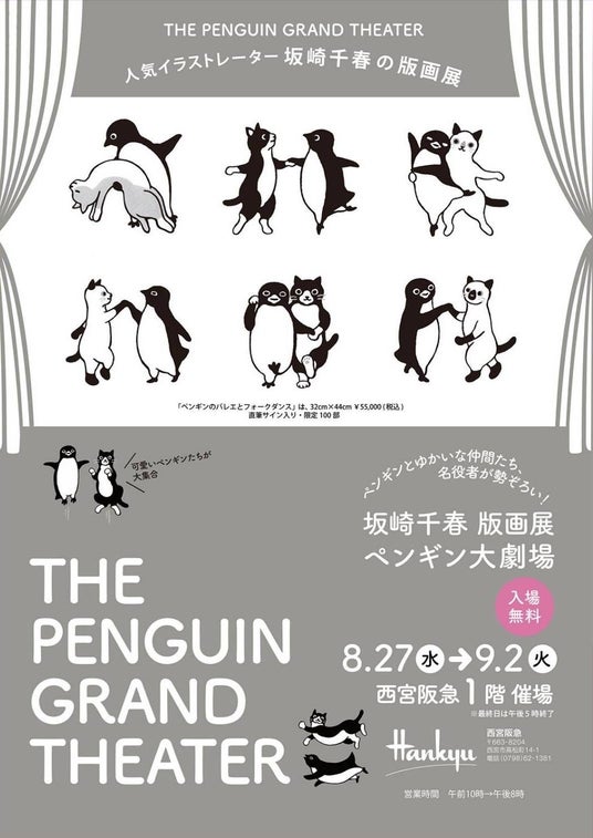 名役者が勢ぞろい!!人気イラストレーター坂崎千春の版画展 『ペンギン大劇場』が西宮阪急で8月27日(水)より開催!!