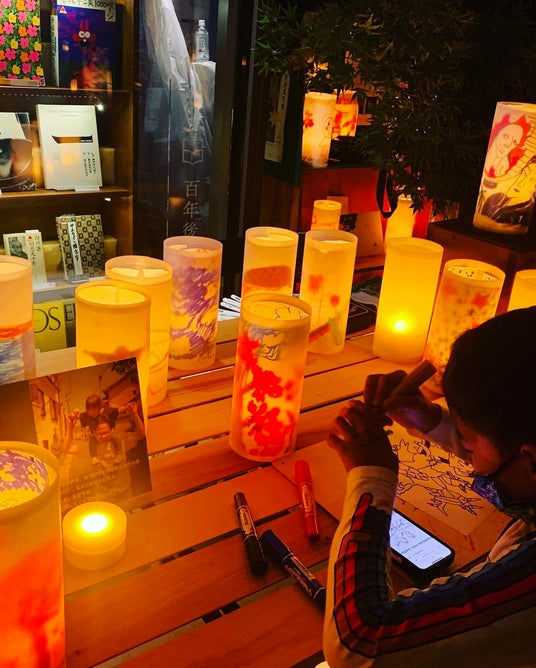 来場者が描いた灯篭が、夜の会場にあたたかな光を灯します。
