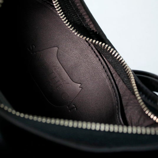 内側のポケットには、ころんとしたかわいい猫型とSAVE THE CATの刻印。