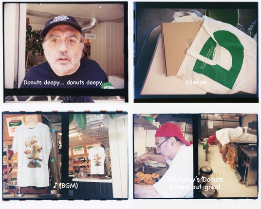本コラボレーションでは、架空の謎のドーナツ屋「grandpa」を舞台にしたストーリーをコンテンツとして制作。そのユニフォームをイメージした、Tシャツやロングシャツなどのアパレルをはじめ、キーホルダーやトートバッグなど、多彩な全5アイテムをラインアップいたします。