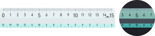 ◎ メモリの下に色がついて見やすいので印刷に合わせて線を引きたい時や物の長さをはかる時に便利。