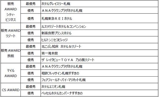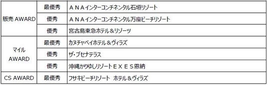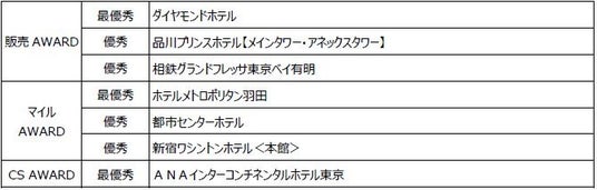 本アワードは、ANAトラベラーズ ダイナミックパッケージ・ANAトラベラーズ ホテルの全国各エリアの契約宿泊施設を対象に公平・公正な選考を行い、3つの賞で表彰させていただきました。特に、「ANAマイルAWARD」は、弊社ならではのANAのマイルを用いてオリジナルの賞を創設いたしました。