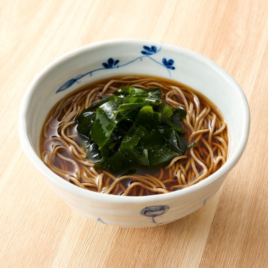 三陸産のわかめを使用したわかめそばです。磯の香と旨味を感じられる一品です。冷たいそばもご用意しております。