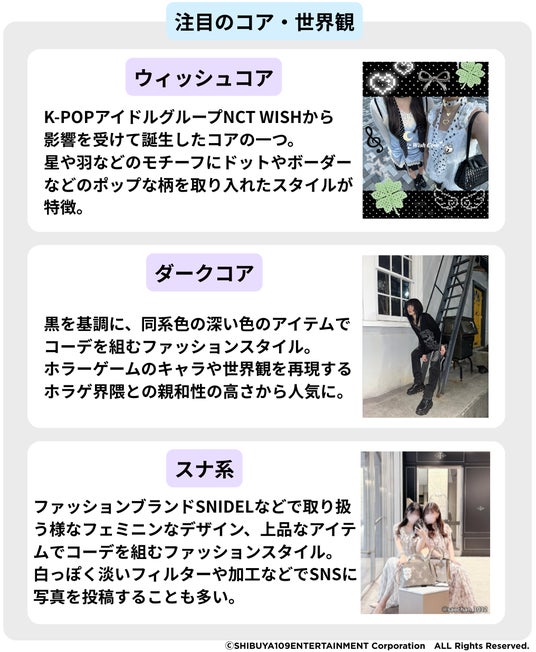 ■SHIBUYA109 lab.概要株式会社SHIBUYA109エンタテイメントが運営する新しい世代に特化した若者マーケティング機関。SHIBUYA109のターゲットである「around20(15~24歳)」を中心に彼らの実態を調査し、SHIBUYA109独自の視点から分析している。
