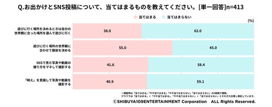 最後に55.0%の若者が「遊びに行く場所の世界観に合わせて服装を決める」と考えているように、若者の中で世界観と遊びに行く場所、ひいてはSNSに投稿する内容と世界観が強く紐づいていることがわかっています。(図11)