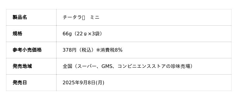 ロングセラー「チータラ」に新提案!おやつにちょうどいいポーションタイプ 「 チータラ(R) ミニ」