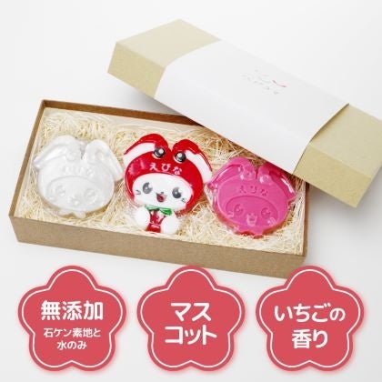 えび~にゃ石けん3種セット(マスコット、無添加、いちごの香り)