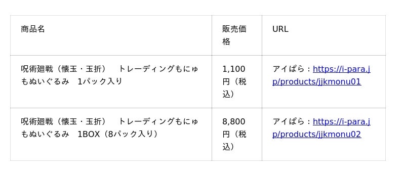 オリジナルグッズの企画・製作を手がけるアイグッズ株式会社(本社:東京都渋谷区)は、TVアニメ『呪術廻戦』「懐玉・玉折」のオリジナルグッズである「トレーディングもにゅもぬいぐるみ」を2025年8月下旬より予約発売を開始いたします。販売は当社のECサイト「アイぱら」にて展開予定です。