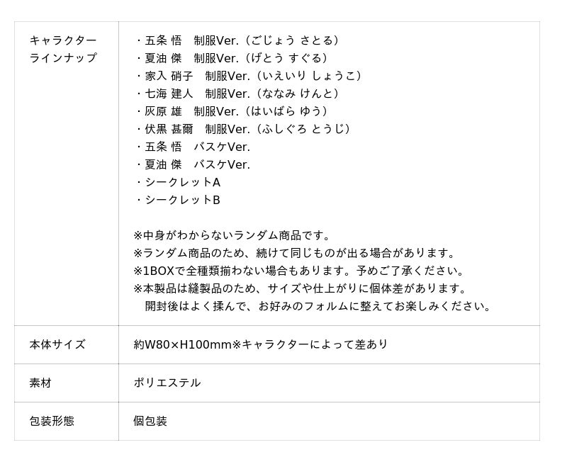 ■全10種展開「呪術廻戦(懐玉・玉折)トレーディングもにゅもぬいぐるみ」