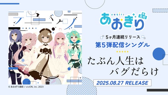 株式会社viviON(所在地:東京都千代田区、代表取締役:明石耕作)が運営するVTuberグループ『あおぎり高校』は、5ヶ月連続配信リリースのラストを飾る5th配信シングル『たぶん人生はバグだらけ』を8月27日(水)0時【※8月26日(火)24時】に配信開始することをお知らせいたします。