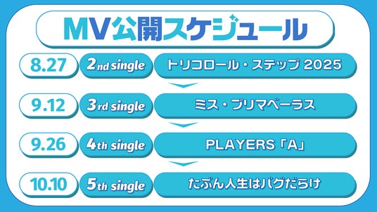 5ヶ月連続リリース楽曲のMVの公開スケジュールも発表!