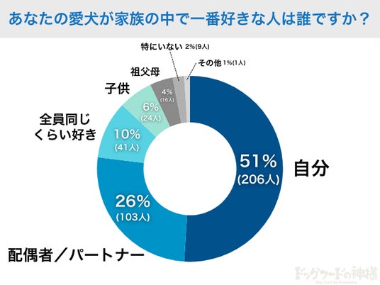 395名の飼い主への調査で、愛犬が家族の中で一番好きな人は「自分」と答えた人が半数にのぼることが判明。食事や散歩など「日常的なお世話を一番担当している人」が選ばれやすい傾向が見られた。