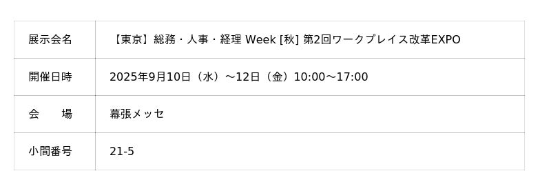 リリカラ「【東京】総務・人事・経理 Week [秋]」内の「ワークプレイス改革EXPO」に出展